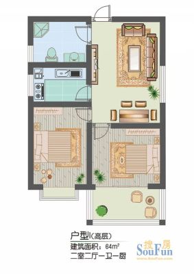 户型齐全,主打南北通透,厨卫不对门,户型方正,主卧朝南,干湿分离,餐客分离,卧室带阳台二居
