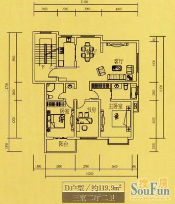 户型齐全,主打南北通透,厨卫不对门,户型方正,客厅朝南,主卧朝南,干湿分离,双阳台,餐客分离,卧室带阳台三居
