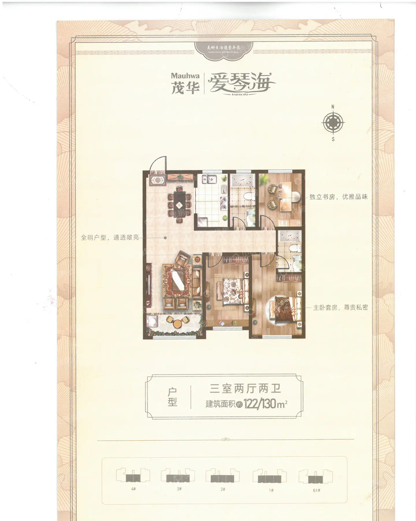 茂华爱琴海户型主要有89平-145平的主卧朝南,卧室带阳台的三居 、147平-192平的主卧朝南,卧室带阳台的四居 、96平-108平的主卧朝南,卧室带阳台的二居 。