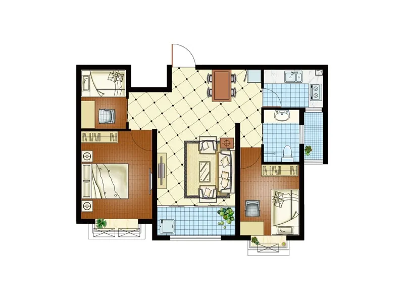 户型齐全,主打卧室朝南,主卧朝南三居