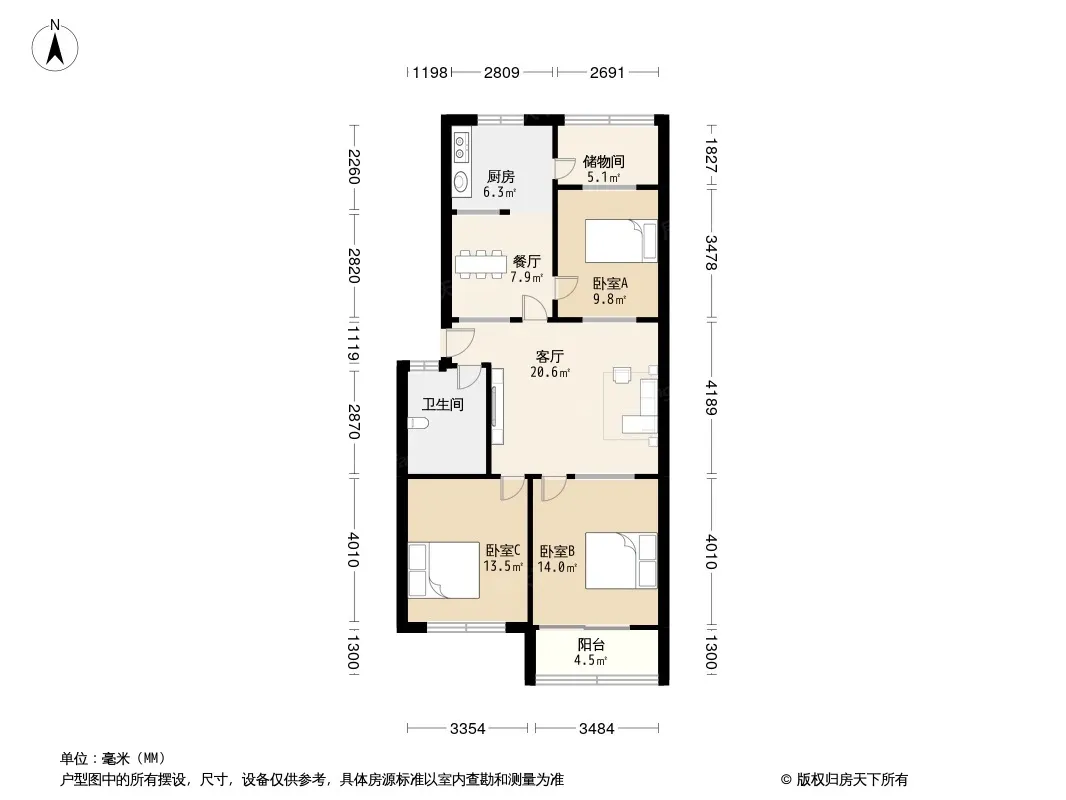 户型齐全,主打户型方正,明厨,明卫,双卧朝南三居