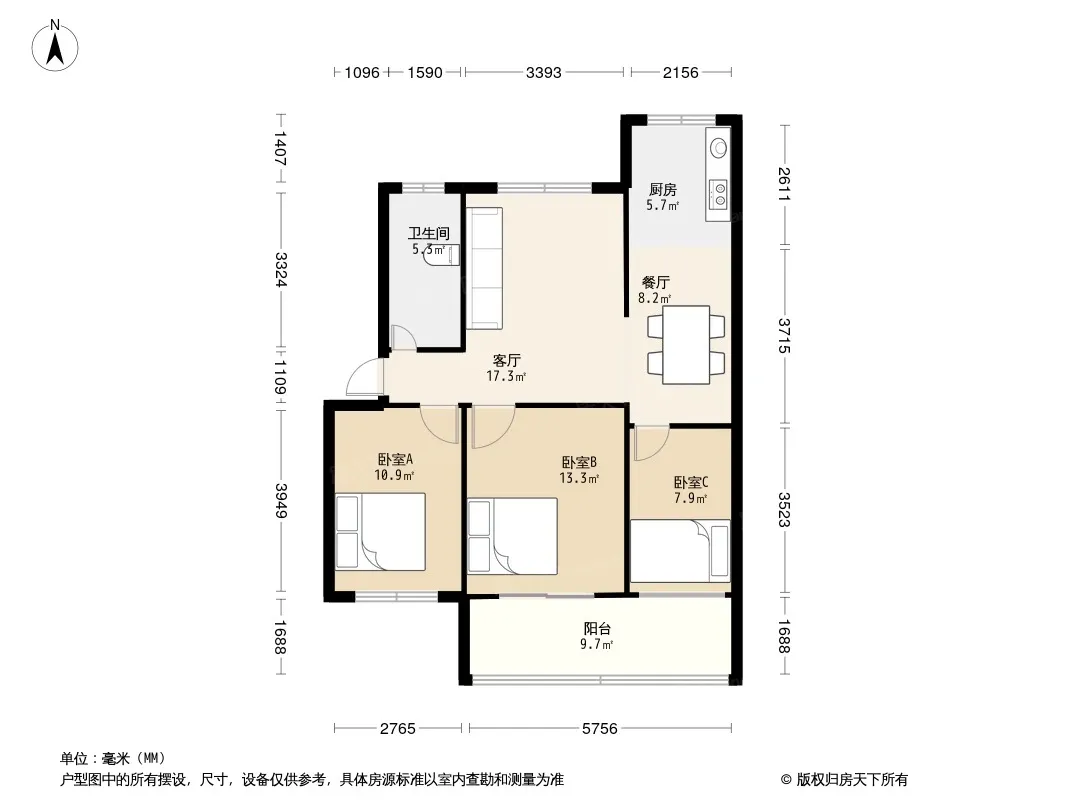 户型齐全,主打户型方正,明厨,明卫,客厅朝南三居