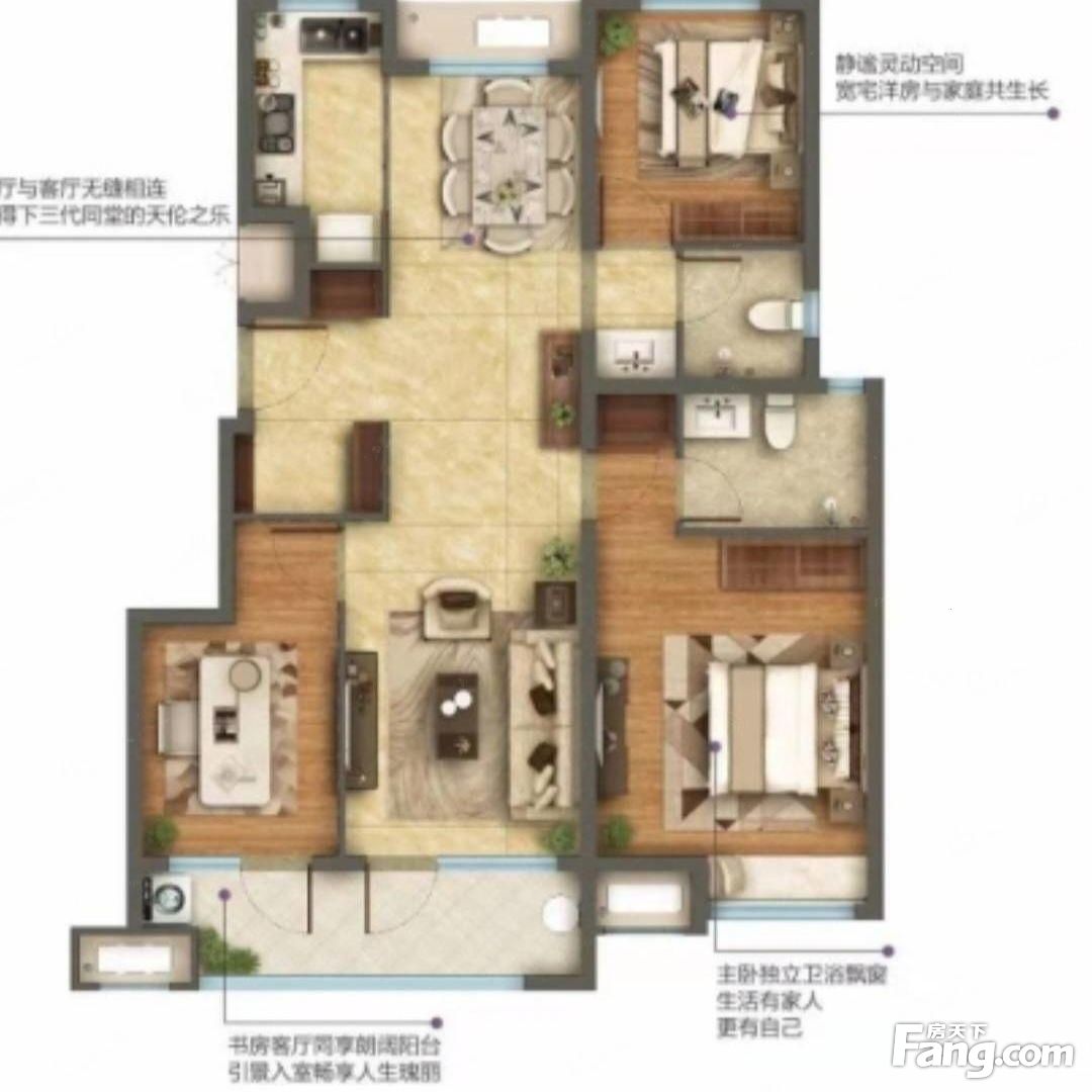 潍坊天泰城户型主要有108平-130平的客厅朝南,大面宽阳台的三居 、140平-140平的南北通透,主卧带卫的四居 。