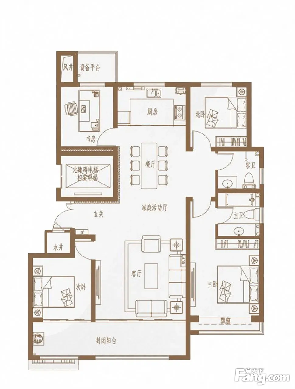 户型齐全,主打南北通透,全明格局,户型方正,动静分离,采光充足四居