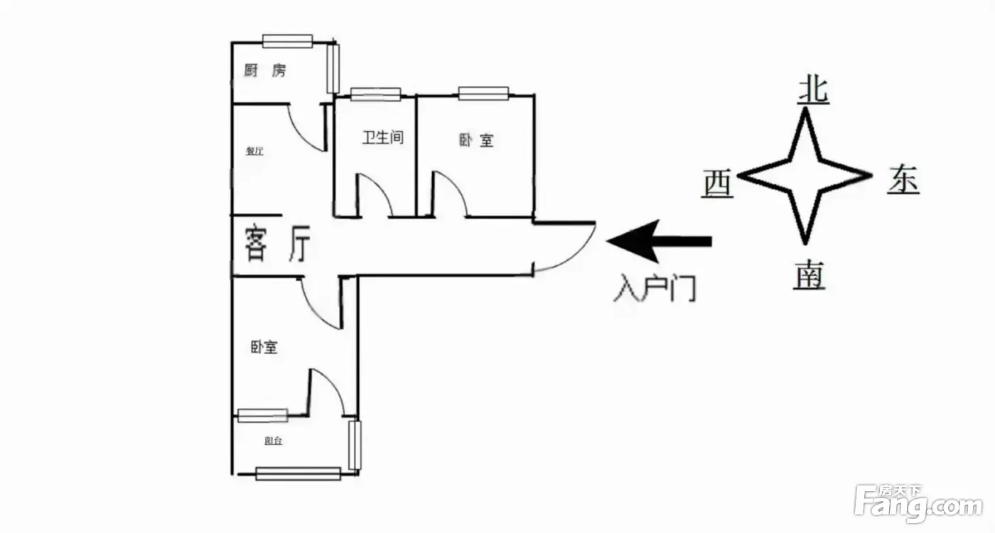 户型齐全,主打明厨,客厅朝南,主卧朝南二居