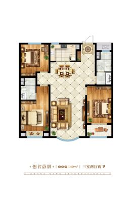 东明近,中阳国际社区,149平客厅朝阳H户型三室双卫