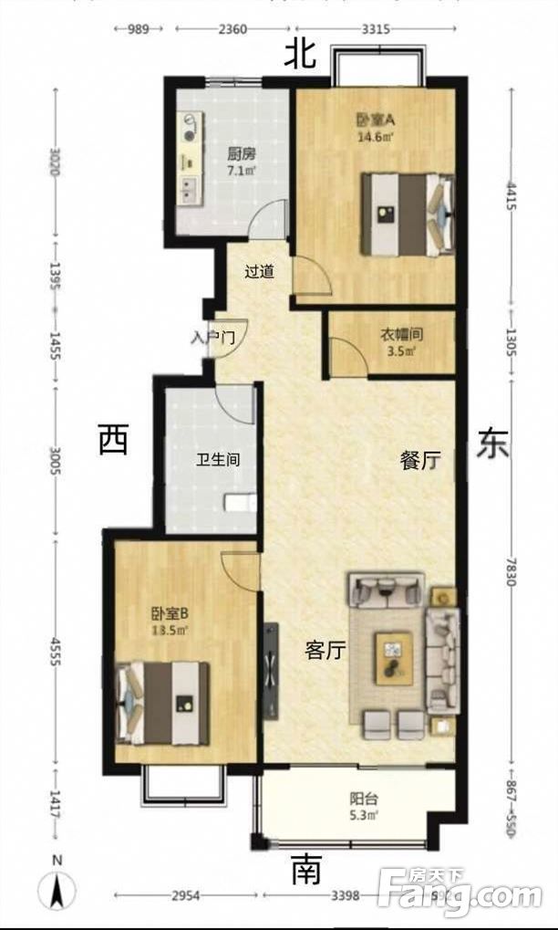 户型齐全,主打户型方正,明卫,明厨,主卧朝南二居