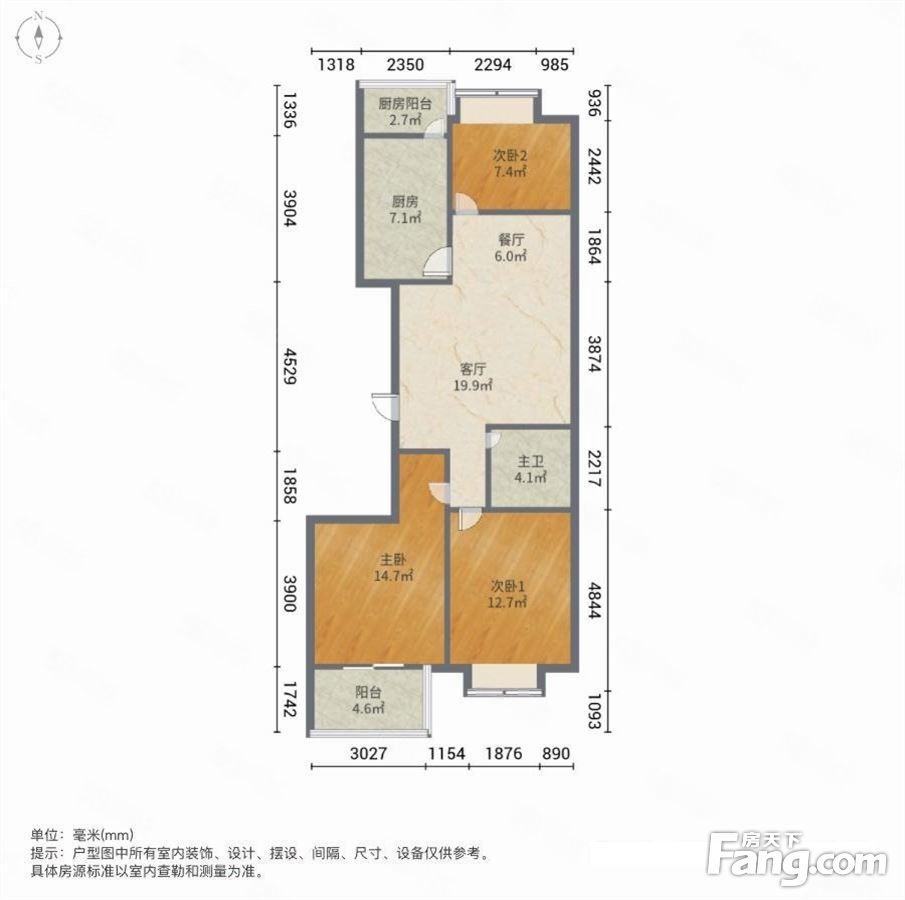 户型齐全,主打户型方正,明卫,明厨,客厅朝南三居
