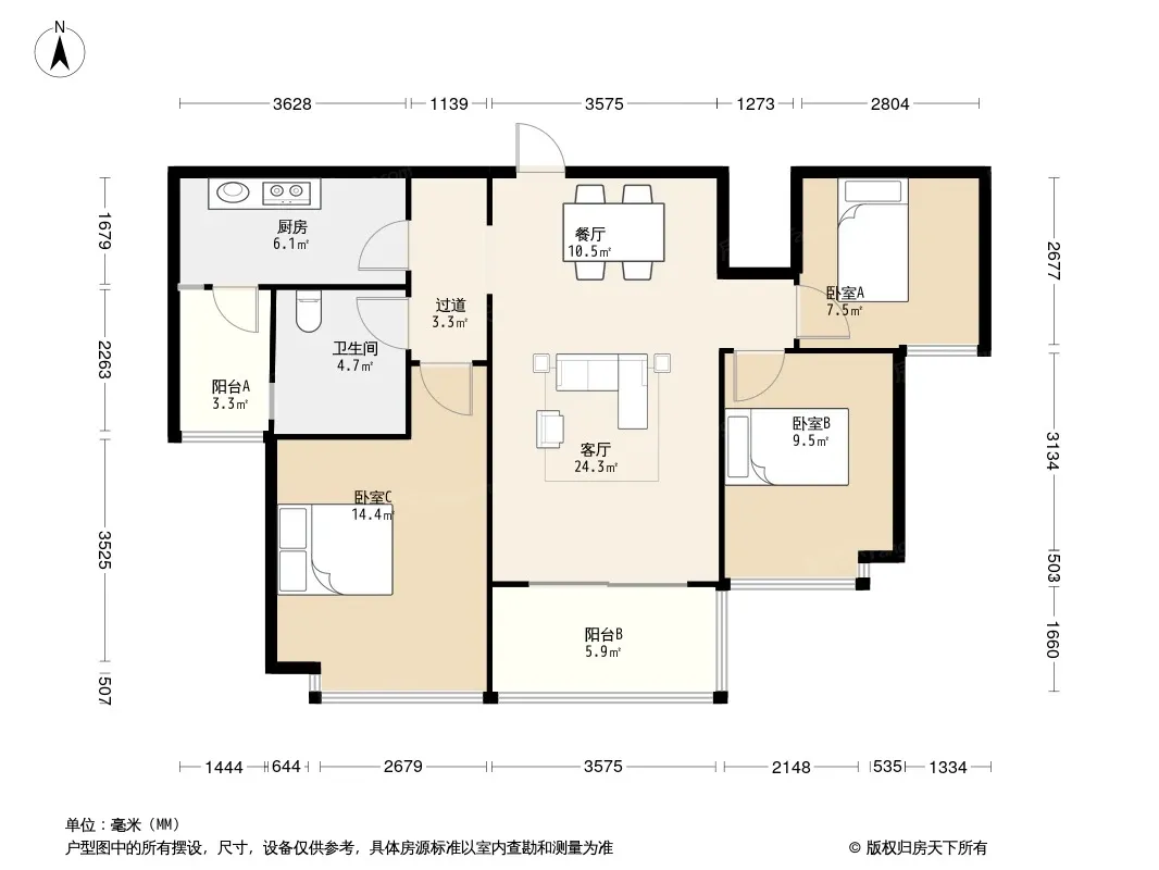 户型齐全,主打户型方正,明厨,明卫,主卧朝南三居