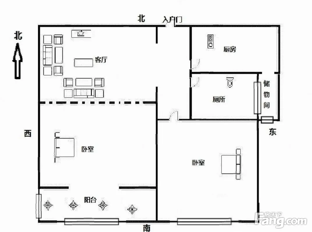户型齐全,主打户型方正,明卫,明厨,客厅朝南,全明格局二居