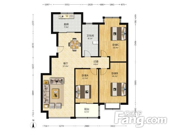 3室2厅1卫