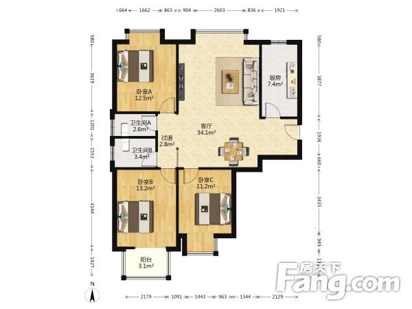 户型齐全,主打户型方正,明厨,明卫,客厅朝南三居