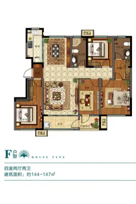 户型齐全,主打采光充足,客厅朝南,卧室朝南,主卧朝南,主卧带卫,L型厨房,干湿分离四居