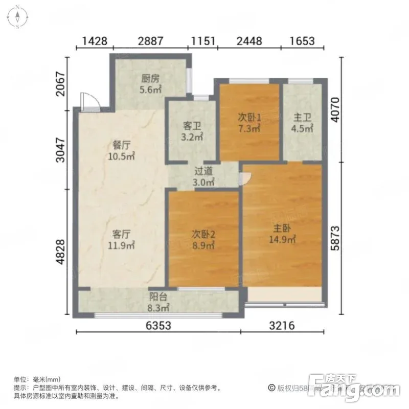 户型齐全,主打客厅朝南,主卧朝南三居