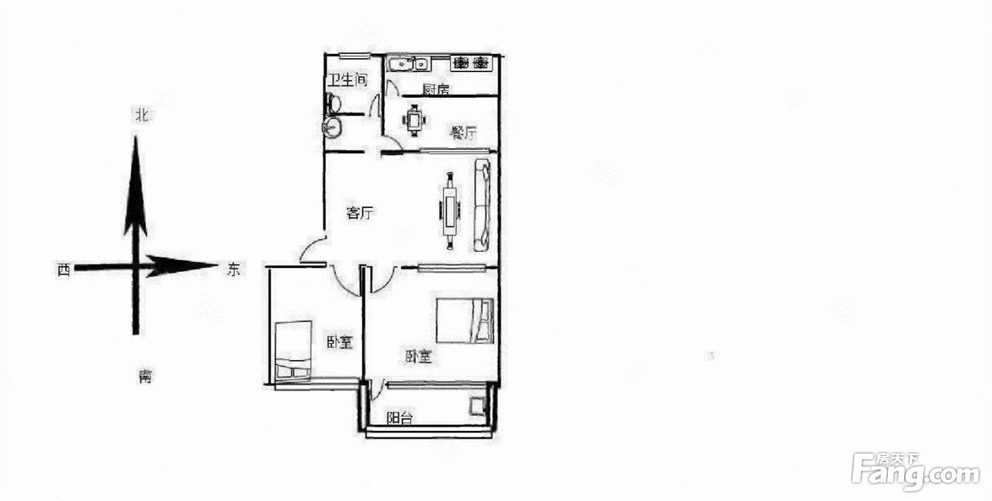 户型齐全,主打明卫,明厨,双卧朝南,主卧朝南二居