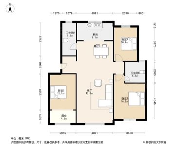 户型齐全,主打户型方正,明卫,明厨,客厅朝南,主卧朝南三居