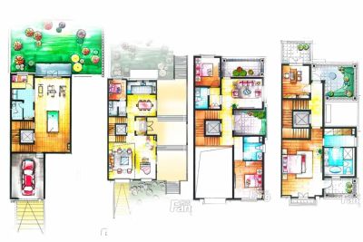 户型齐全,主打独立车库,多功能地下室,露台其他居