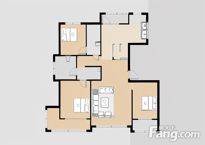 户型齐全,主打南北通透,卧室朝南三居