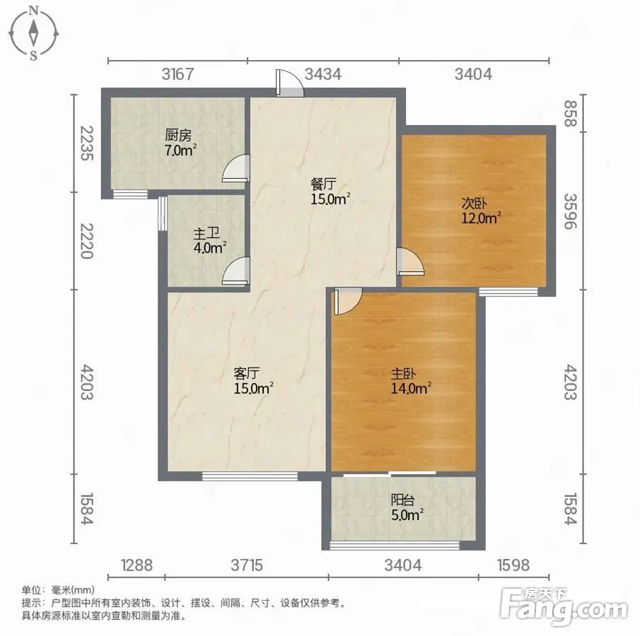 和扬万悦城 2室2厅 南