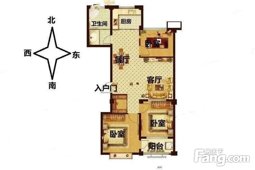 户型齐全,主打南北通透,主卧朝南三居