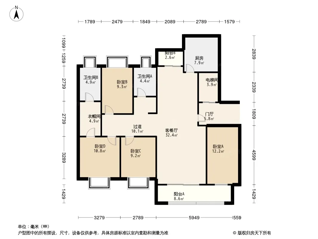 江夏纸坊142平4房2卫时代城南北格局