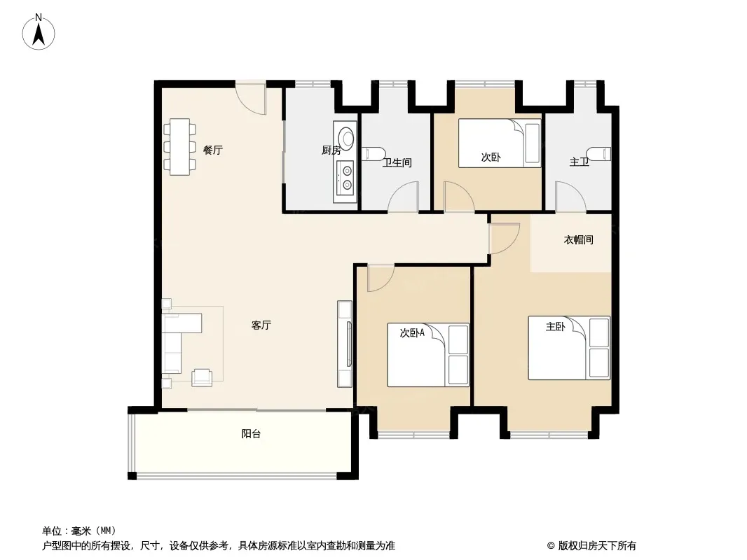 户型齐全,主打户型方正,主卧朝南三居