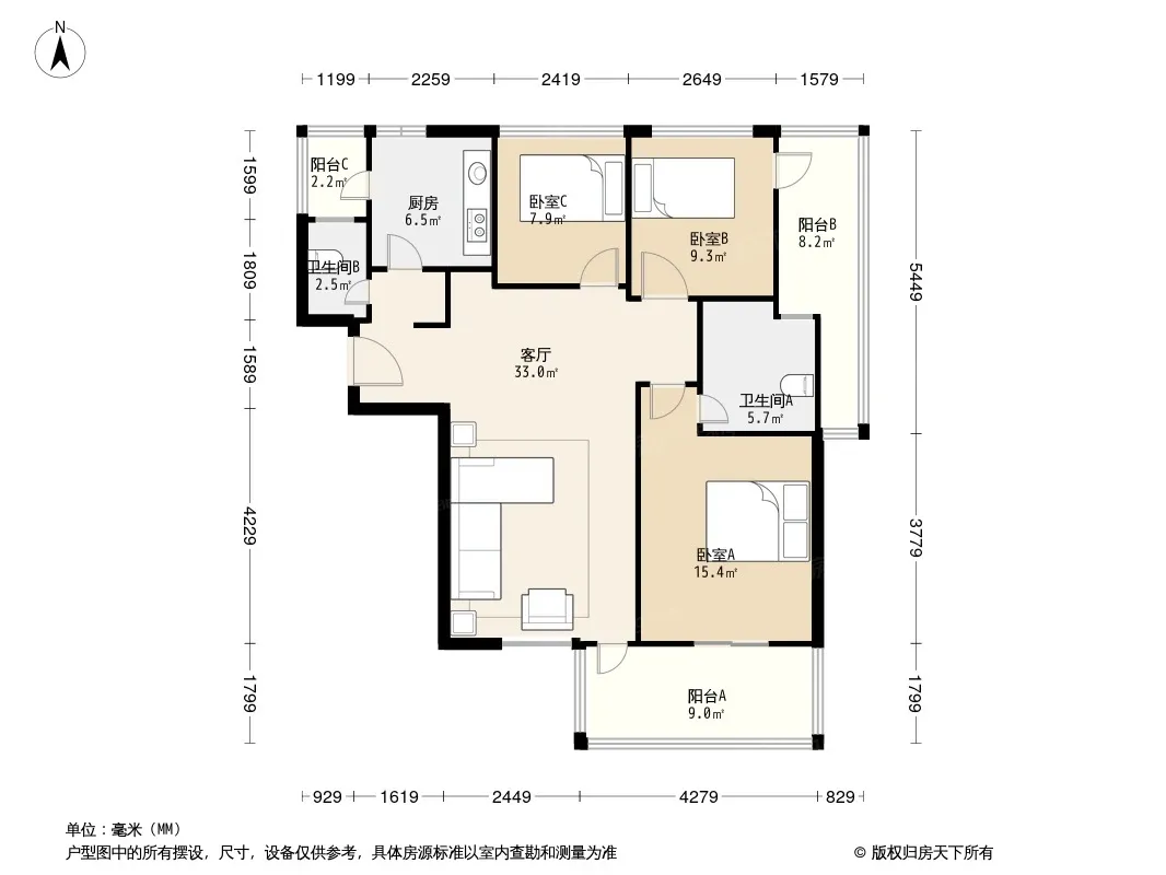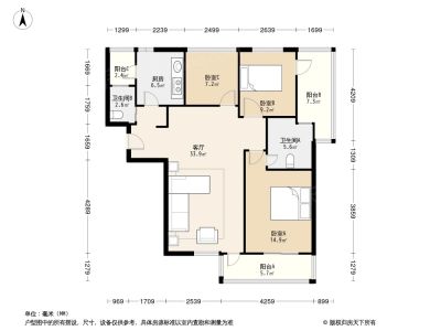 户型齐全,主打户型方正,明厨,明卫,客厅朝南,双阳台三居