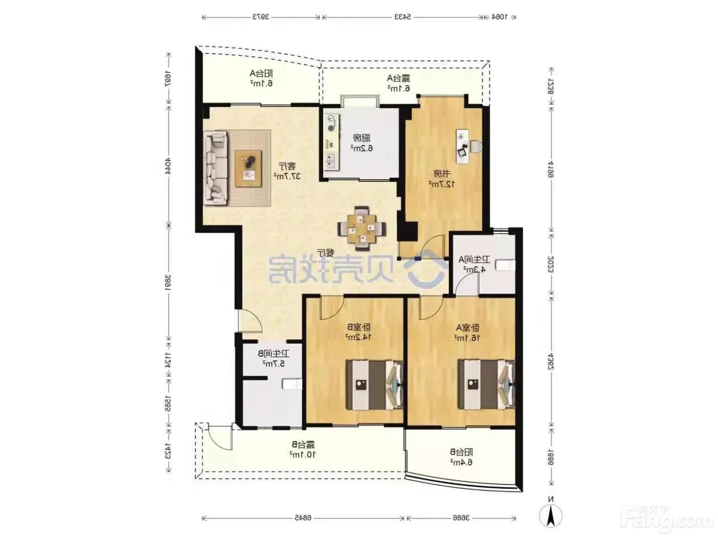 赠送南北2个大阳台,可以看湖