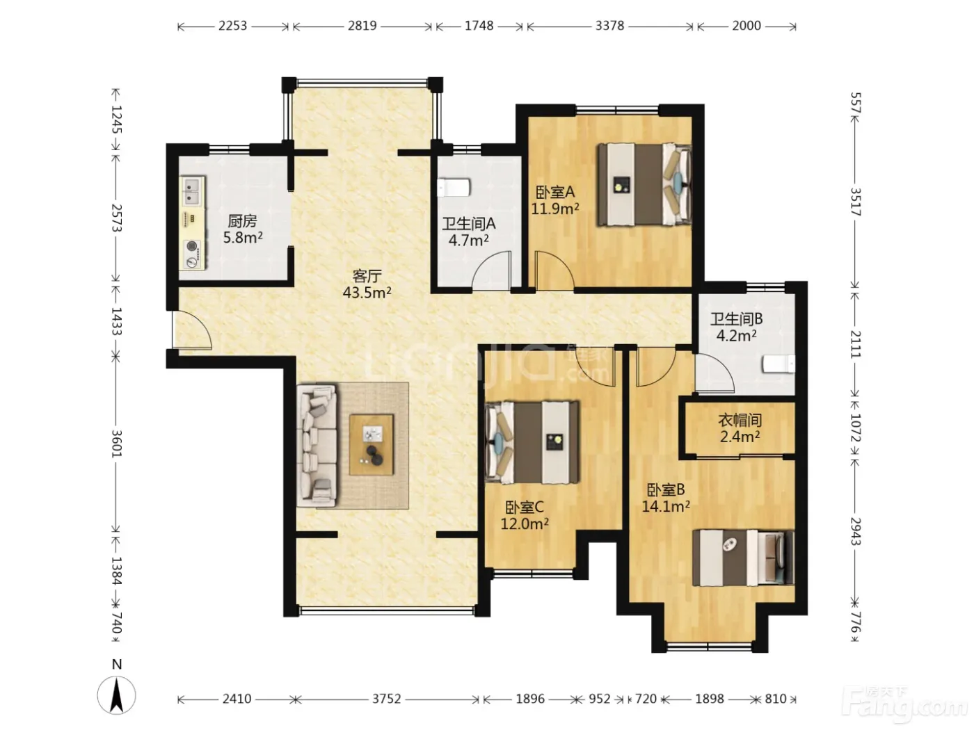 3室1厅2卫