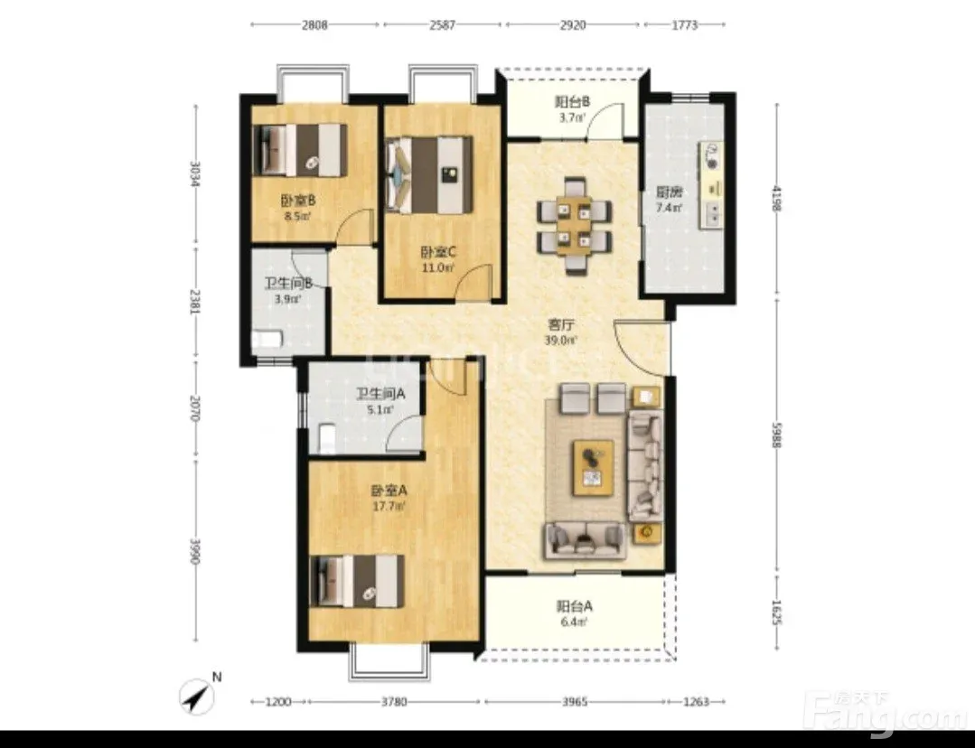 户型齐全,主打户型方正,明卫,明厨,双阳台三居