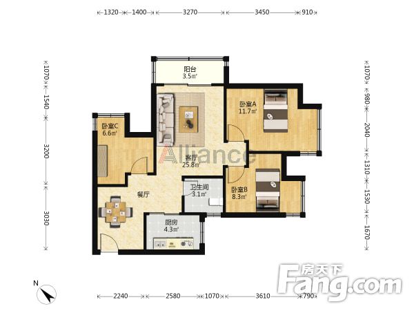 3室2厅1卫