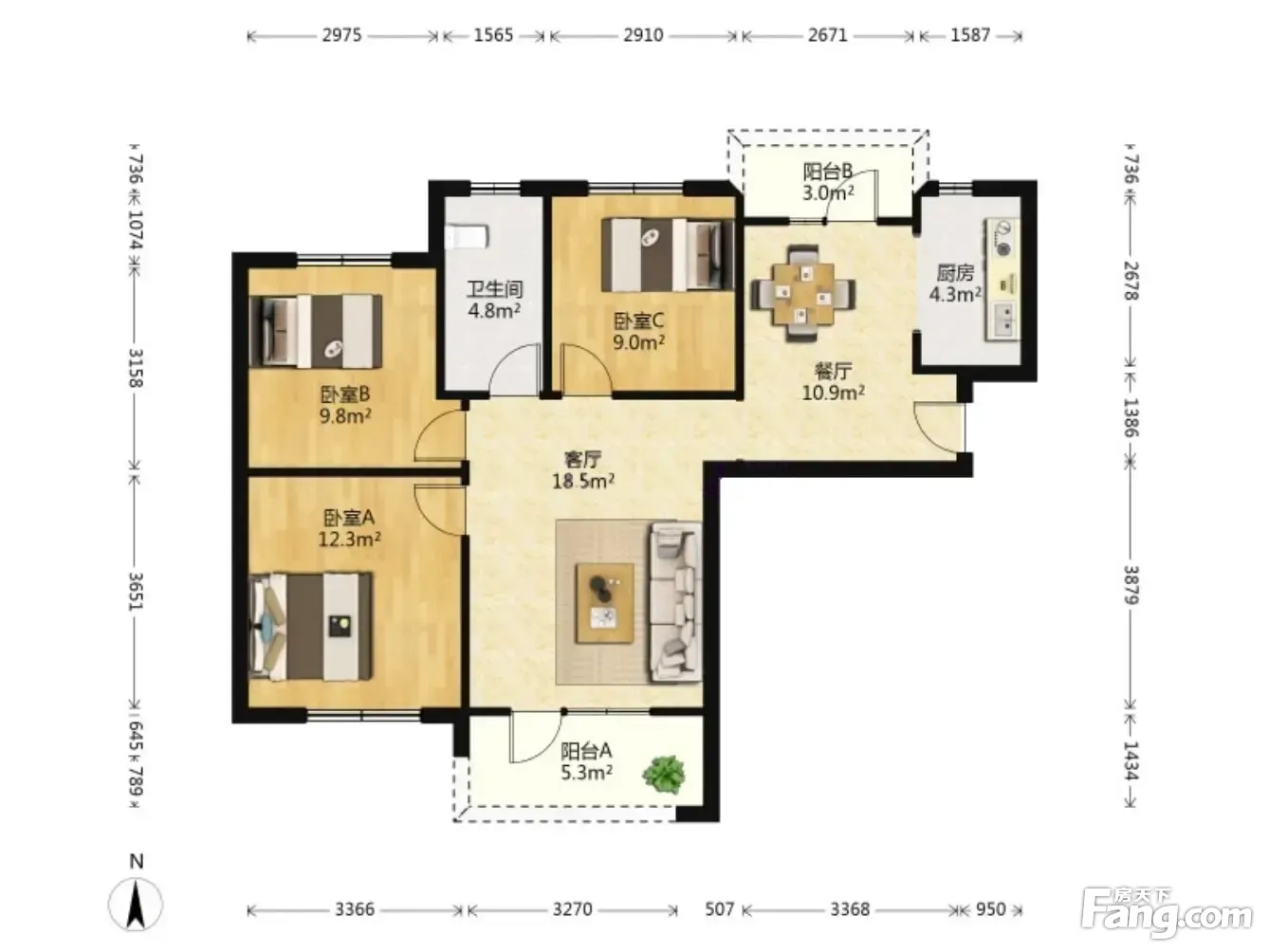 3室2厅1卫