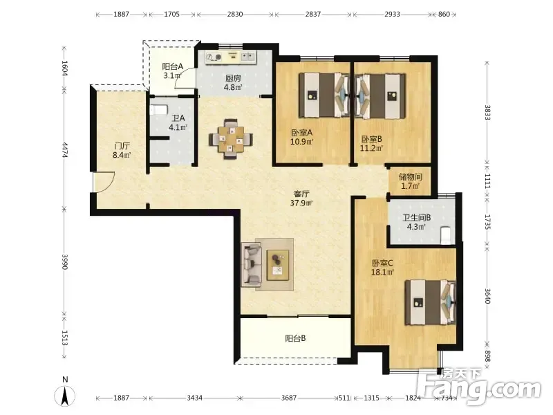 户型齐全,主打明厨,明卫,主卧朝南三居
