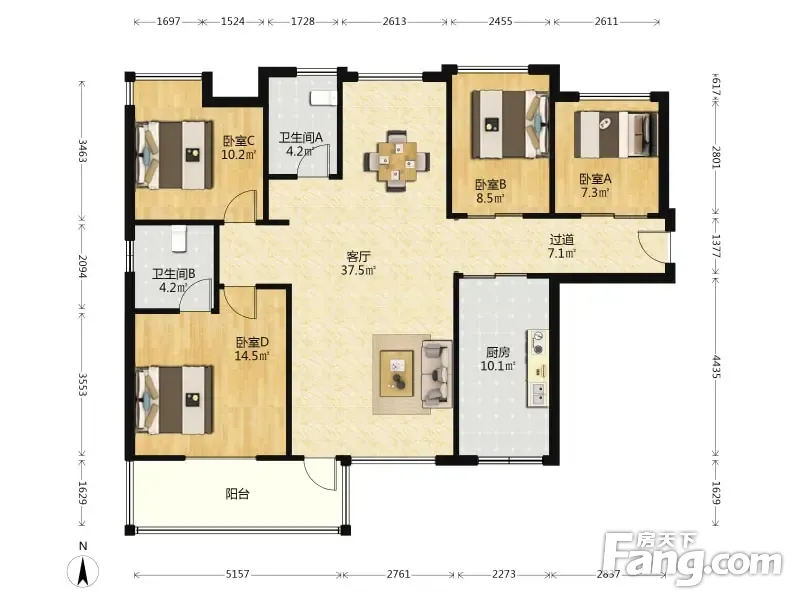 户型齐全,主打户型方正,明厨,明卫,主卧朝南四居