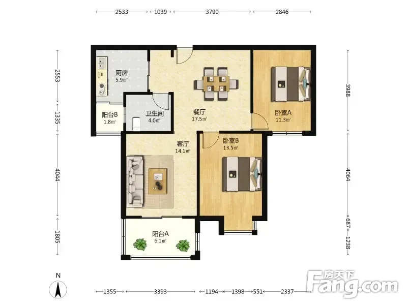 户型齐全,主打客厅朝南,主卧朝南二居