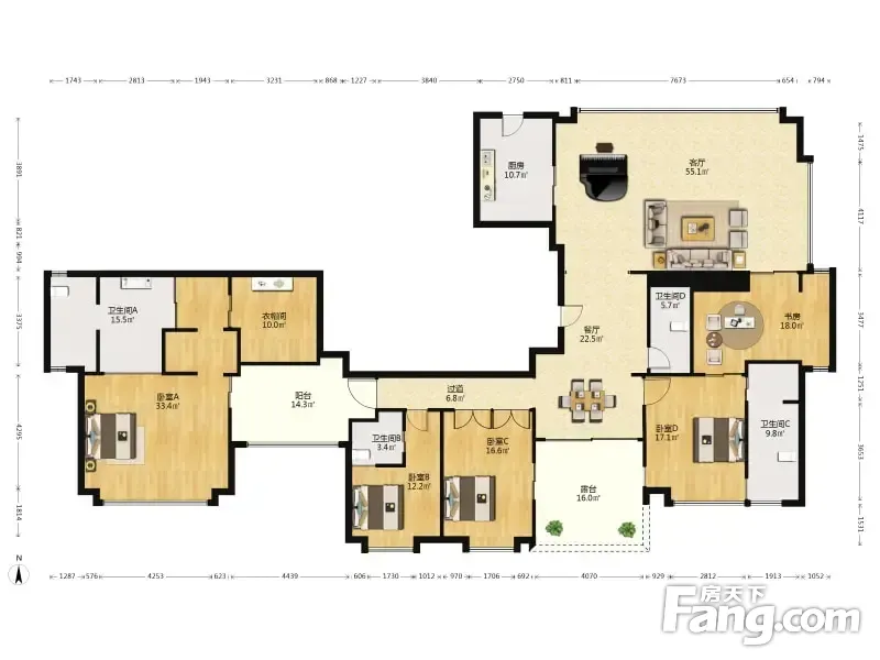 房屋拥有相对宽松的尺寸,布局通透,动静分离,设计豪华