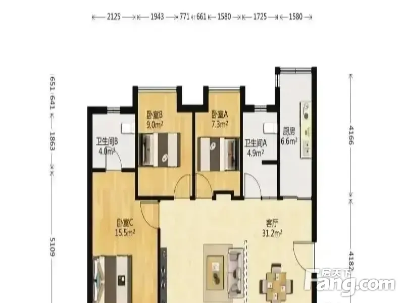 户型齐全,主打户型方正,明厨,主卧朝南三居