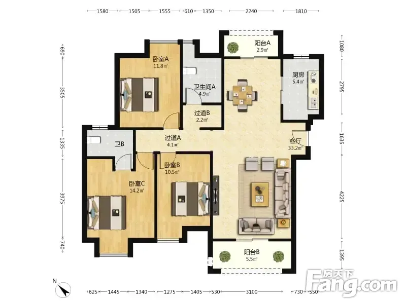 3室2厅1卫
