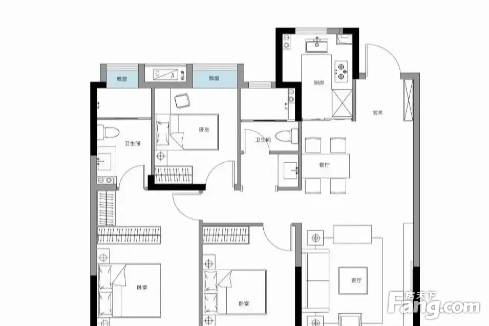 户型齐全,主打南北通透,大面宽阳台四居