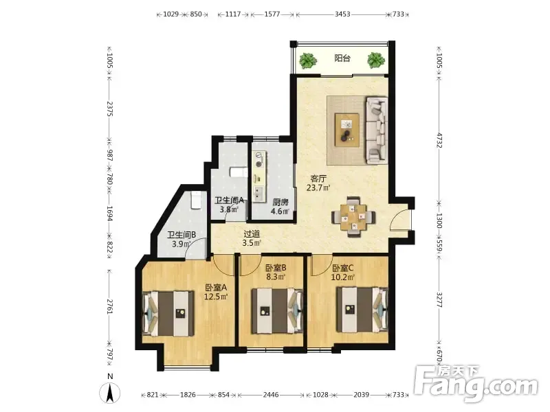 帝斯曼国际中心 3室2厅 113.29平