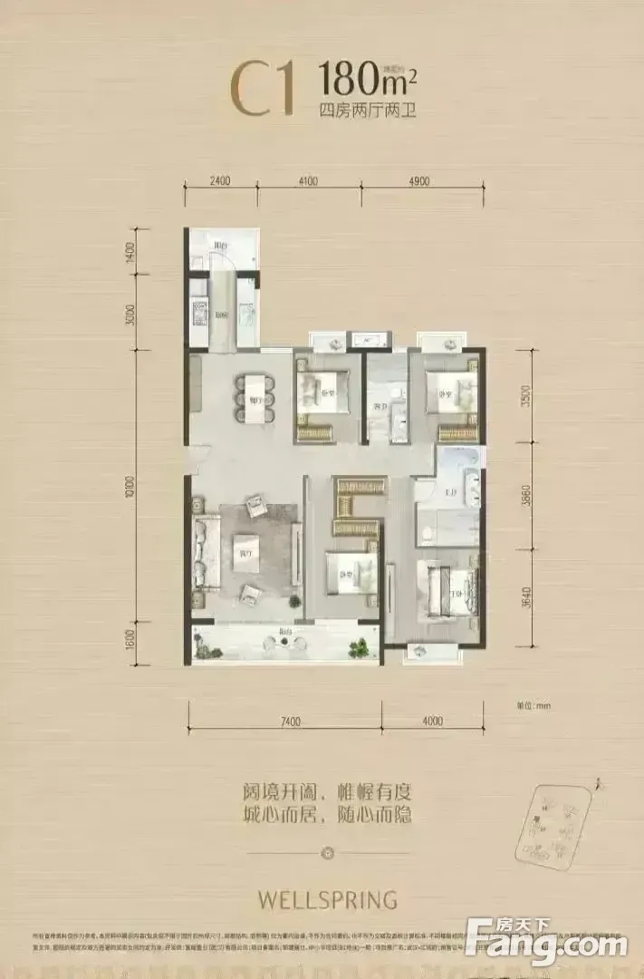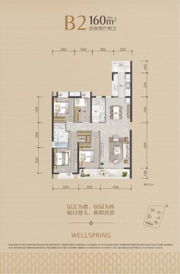 武汉江城府户型主要有160平-180平的南北通透,户型方正的四居 、122平-127平的南北通透,采光充足的三居 。
