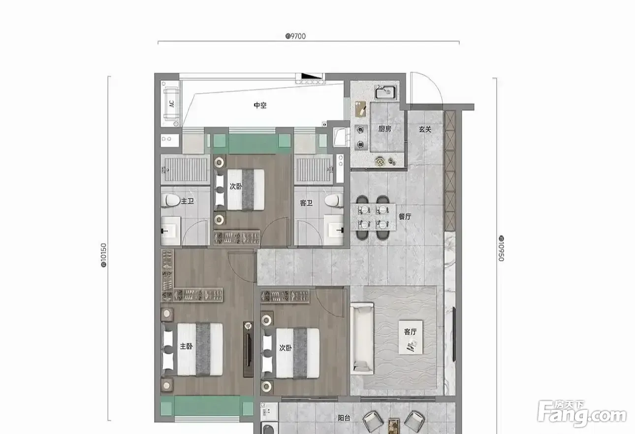 房屋拥有相对宽松的尺寸,布局通透,动静分离,设计豪华