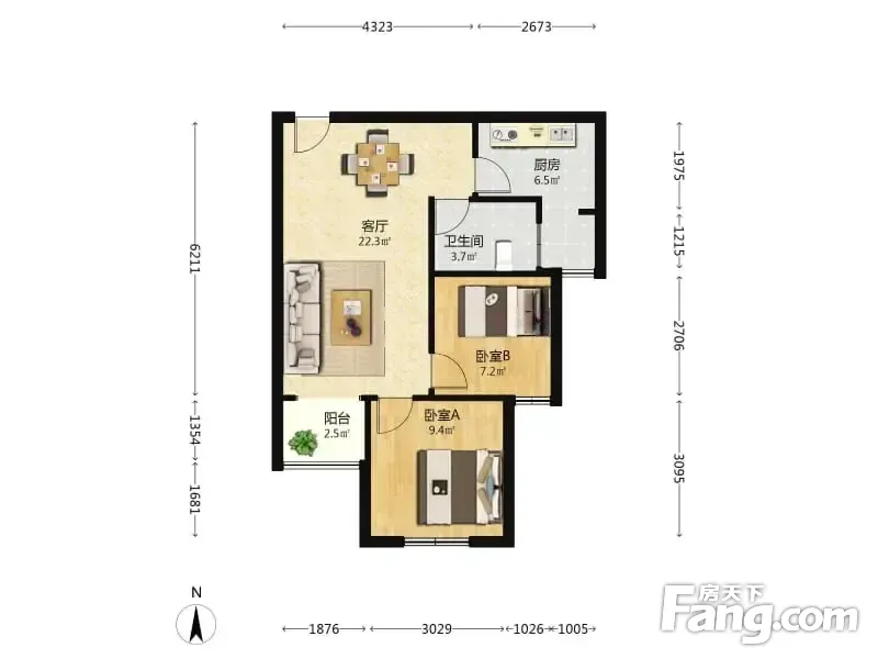 时代花园东区 2室1厅 68.48平