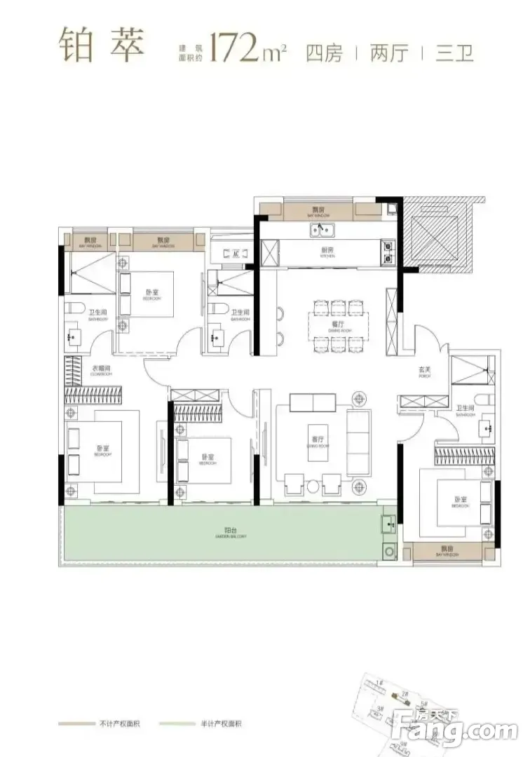 福星惠誉·铂雅府户型主要有138平-172平的南北通透,高附赠空间的四居 、106平-106平的南北通透,高附赠空间的三居 。