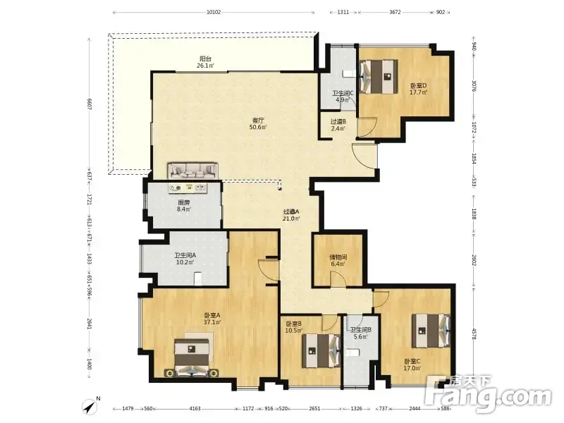 武汉长江中心 4室1厅 282.94平