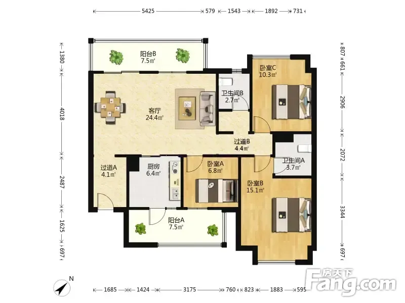 万科城 3室2厅 115.01平