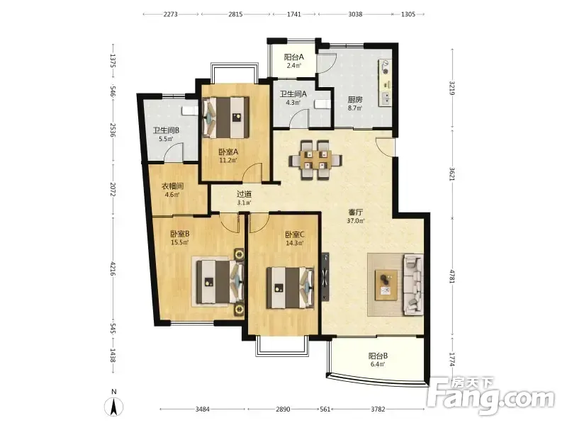 名都花园 3室2厅 137.55平