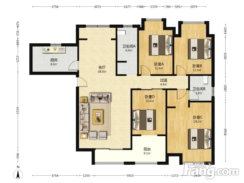 房屋拥有相对宽松的尺寸,布局通透,动静分离,设计豪华