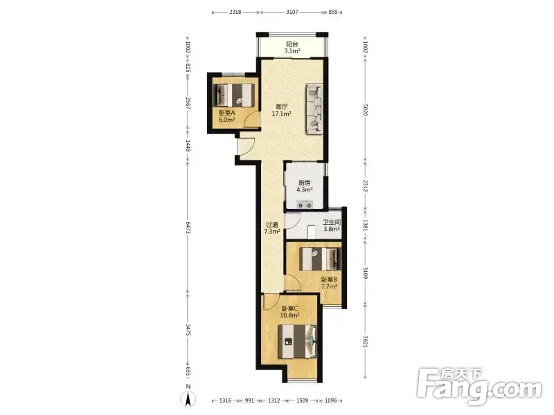 3室1厅1卫