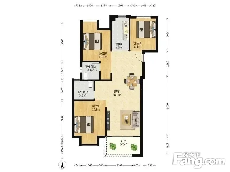 3室2厅1卫